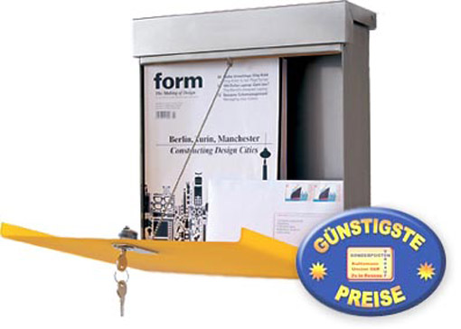 Ebenso haben hier auch etwas größere Briefsendungen problemlos Platz, denn auf Grund seiner Geräumigkeit müssen selbst großformatige Briefe nicht gefaltet und können somit immer unbeschädigt zugestellt werden. Durch das stabiles Schloss ist die Post auch dann vor unerwünschten Zugriffen geschützt, wenn die Leerung nicht täglich erfolgt.