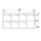 Anordnung und Größe sind abhängig von der Anzahl der Briefkästen. Standard-Ausstattung bestehend aus einem gelochten Sprechsieb und ein Antivandalismus-Klingeltaster je Briefkasten.